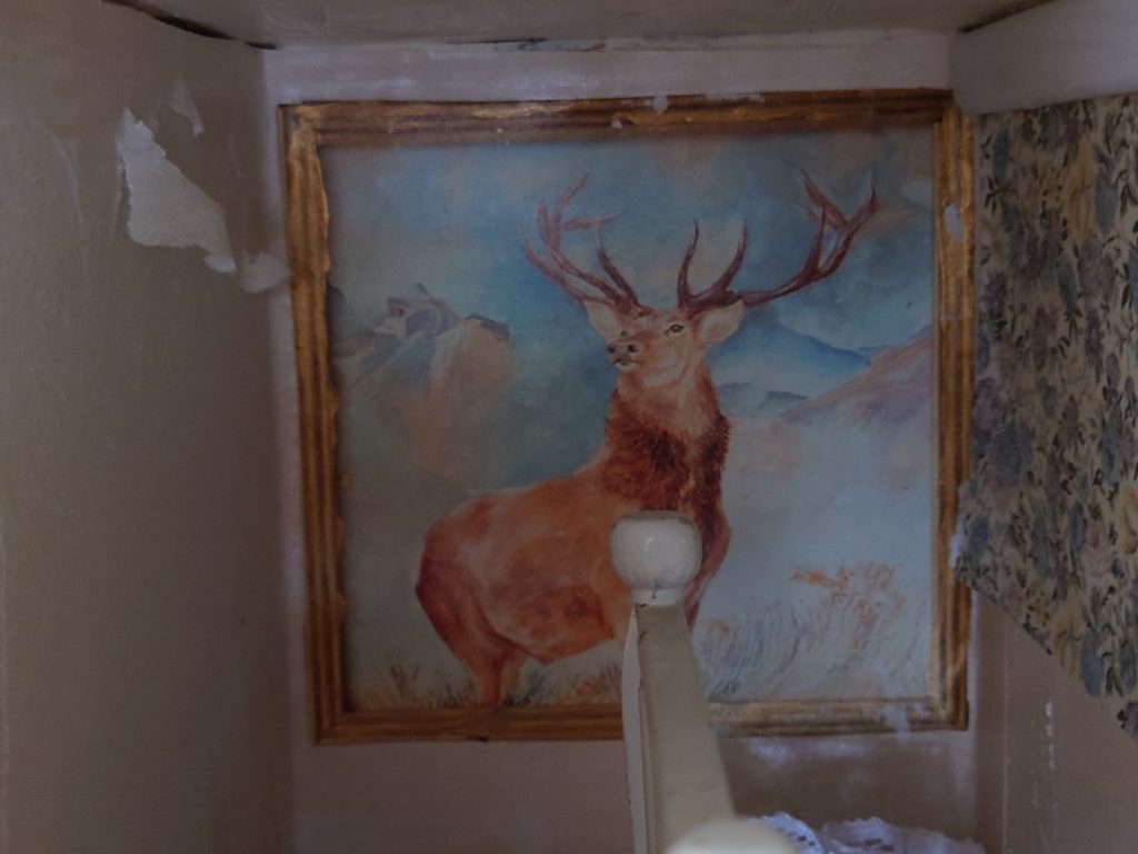 I have no idea of the age of this house but it’s been worked on several times, finding wallpaper behind wallpaper (and a “Monarch of the Glen” which was a nice surprise!