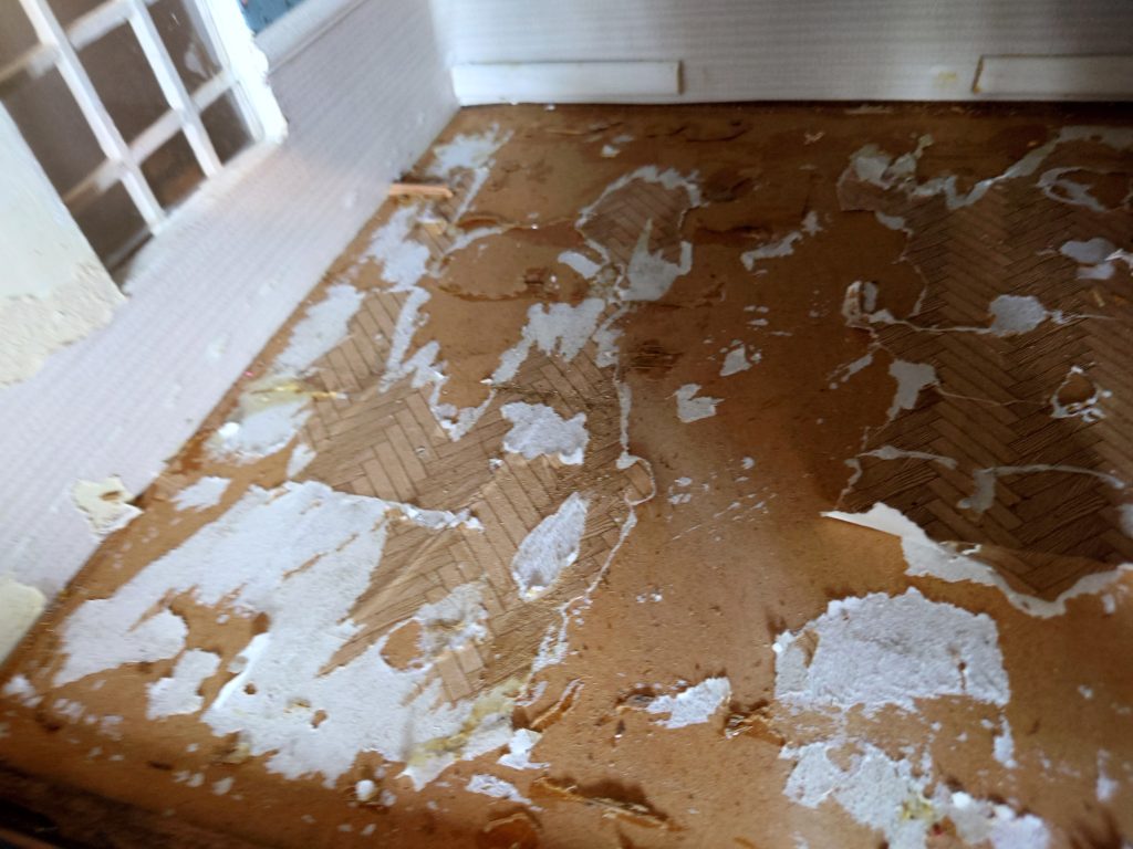 All the features of the house were really quite dated, with drab paper/felt carpets, oversize floorboards with thick layers of varnish, net curtains glued to the very crudely constructed moulded windows, random wallpapers with skirting, dado rails and coving welded to it. It all had to go!